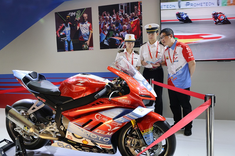 4月20日,在第139届广交会的摩托车展区,围满了来自世界各地的采购商,很多人专程赶来,只为一睹半个月前在WSBK世界超级摩托车锦标赛上“一战封神”的中国品牌——张雪机车。