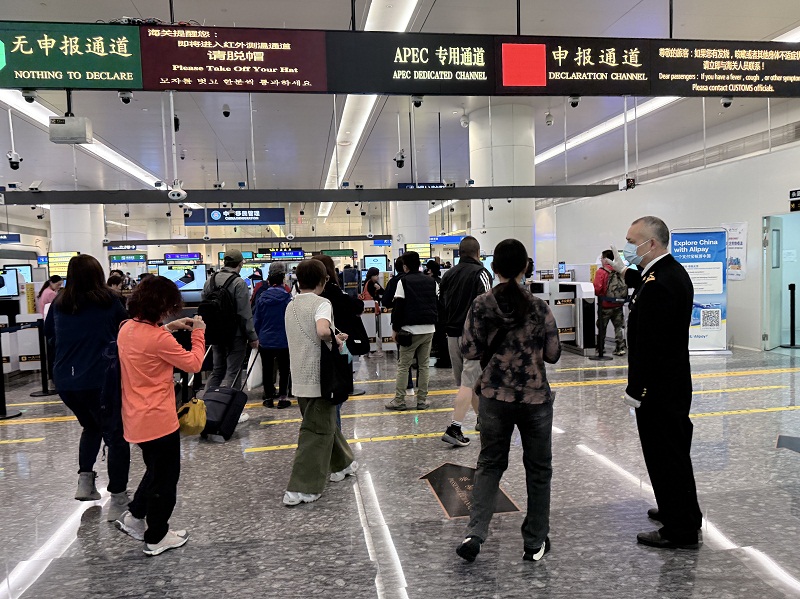 针对外籍旅客增多的情况,研发“翻译+”系统,配备智能翻译设备,增设双语指引标识,实现多语种实时无障碍沟通,全面提升国际旅客通关体验。积极优化退税服务,设置宣传展板,合理调配现场人力资源,提升旅客办理便利度,充分释放离境退税政策红利,进一步扩大入境消费。