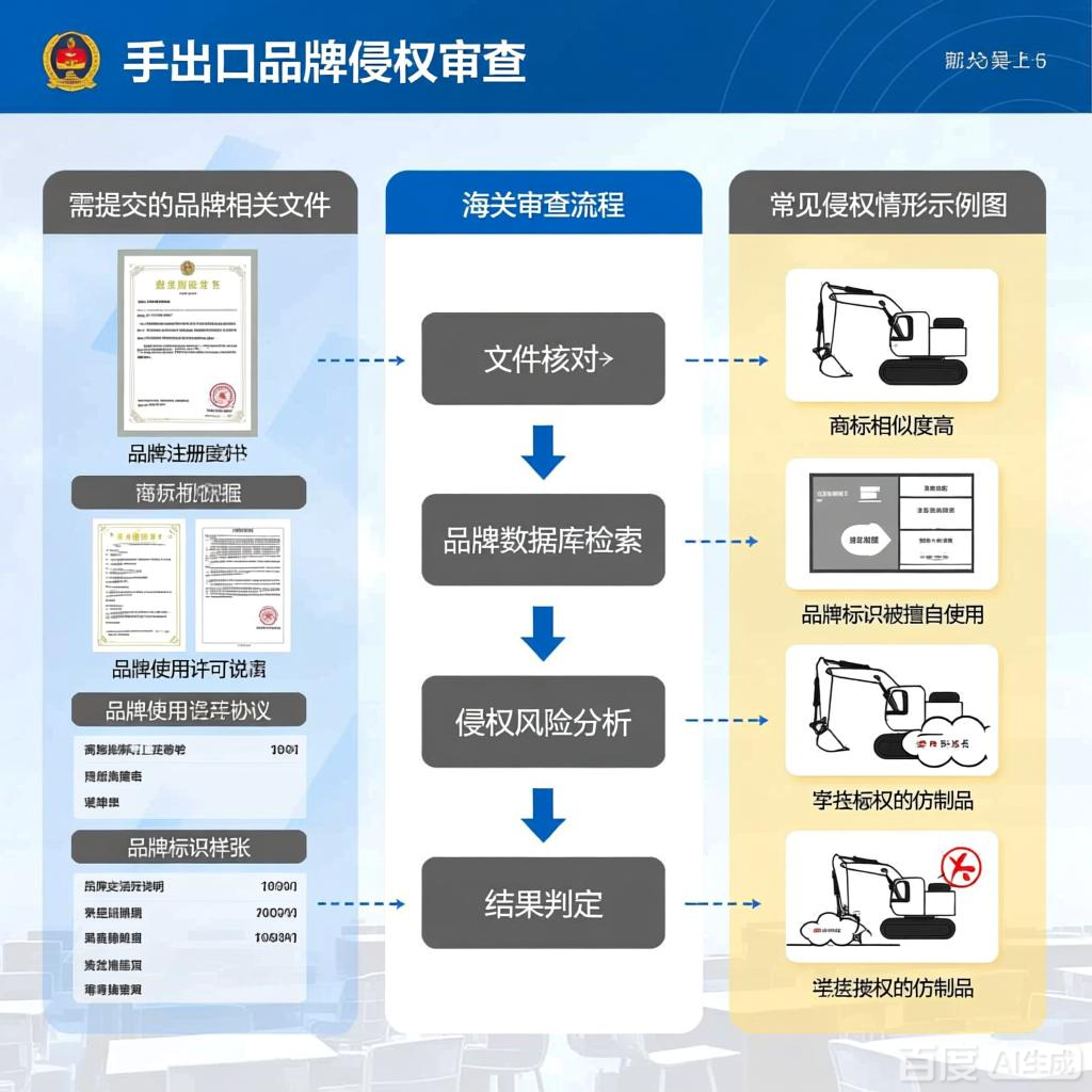 实际案例:2024年江苏某企业出口一批国产二手挖掘机,品牌为“XX重工”(未备案),海关未提出任何知识产权问题,货物顺利通关。该企业负责人表示:“我们原以为会被查,但海关根本没关注品牌问题。”