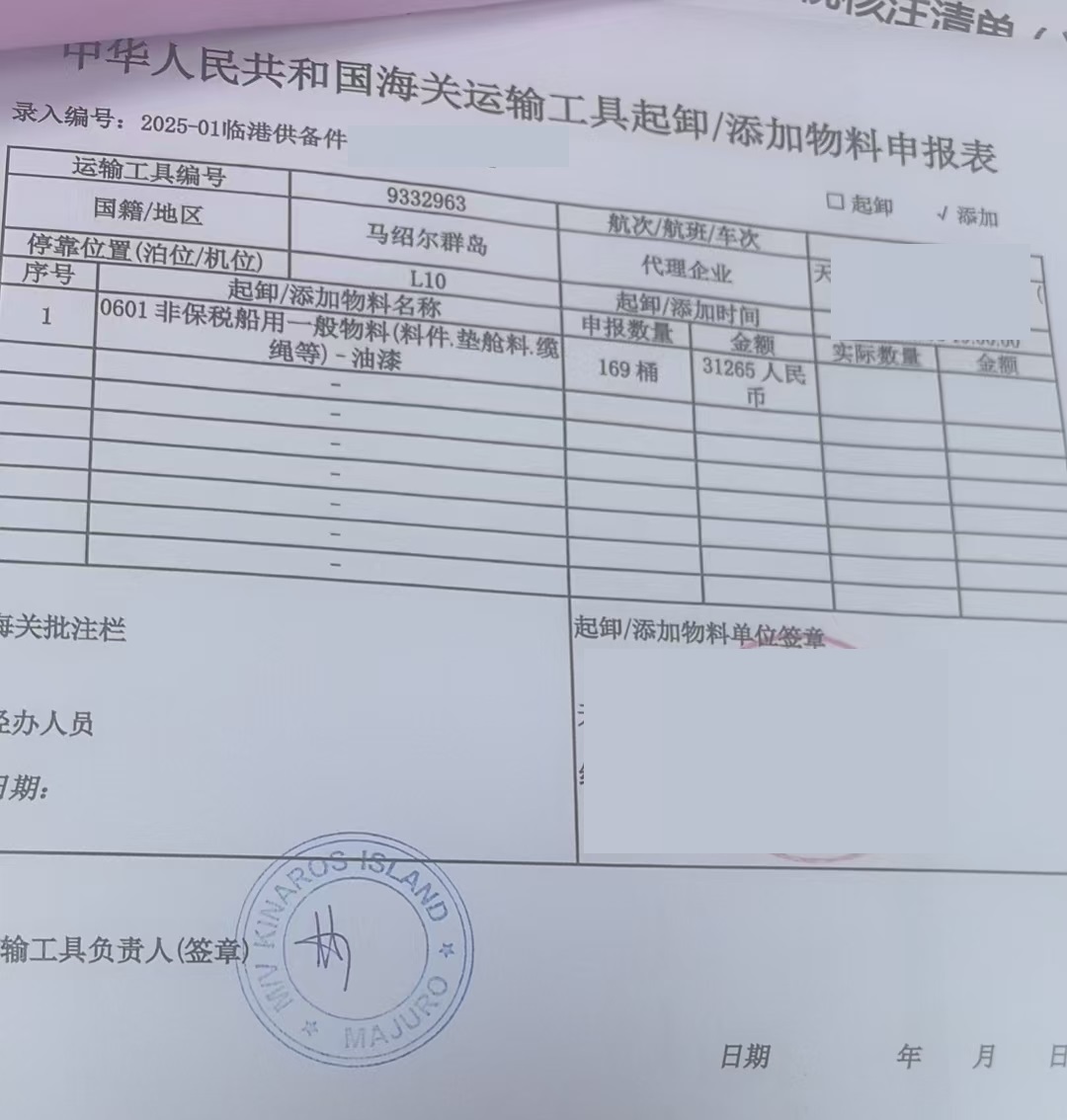 四、天津赤马供应链外籍船物料报关